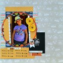 I used the "G" column straight down: 3 photos, 2 punches, buttons, washi tape and stamping